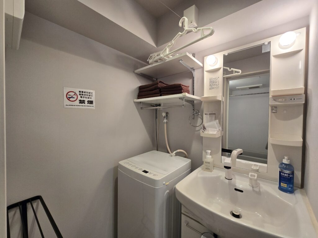 独立洗面台と洗濯機を室内に設置しています。身支度がしやすく、長期のご滞在でもお洗濯に困ることはありません。