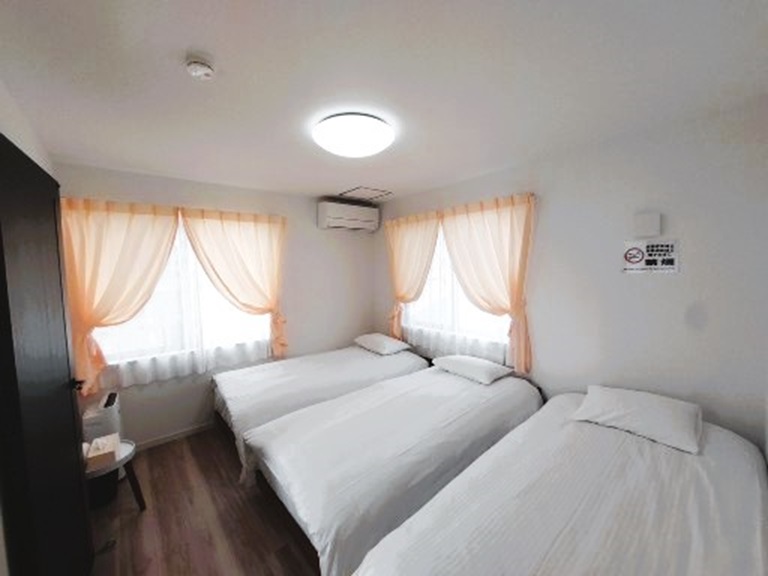シングルベッド3台を備えた寝室です。それぞれ独立したベッドで、ご家族やご友人とゆっくりとお休みいただけます。
