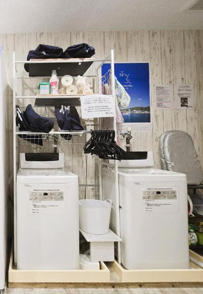 ご宿泊者様どなたでもご利用可能な無料の洗濯機を完備しております。 洗濯後はお部屋で干していただけます。