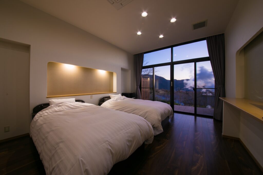 湯布院の中心地から少し離れた高台に位置しており、湯布院盆地を一望できるのが大きな魅力です。