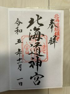 私事ではありますが御朱印を集めてまして北海道神宮でもいただきました。