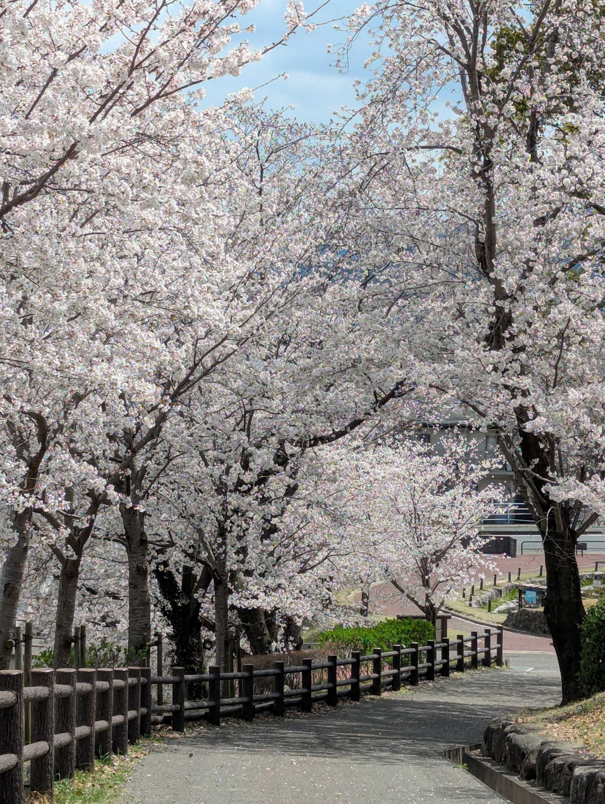 芝生の広場にはちょっとした遊具があり、お子様連れに人気の公園ですが、竹林の遊歩道や展望台もあり、桜を楽しみながら軽いお散歩ができます。