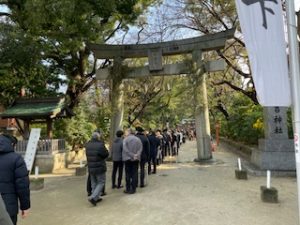 フェニックス・アール・イーでは、1月6日に毎年恒例の住吉神社へ初詣に行きました。天気が心配でしたが、10時以降は雨がやみ、無事に参拝することができました。